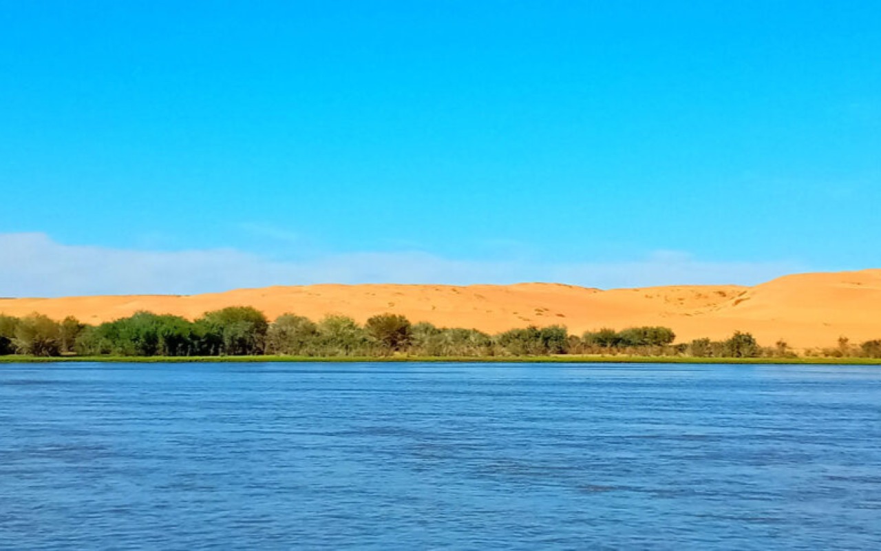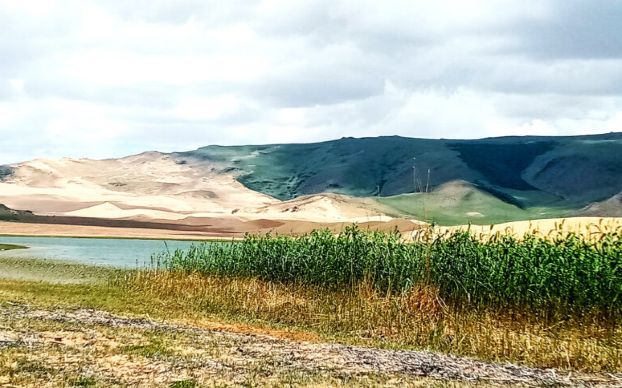 Stunning Zavkhan river bordering Ikh Mongol sand dunes – Durvuljin, Zavkhan province, Mongolia