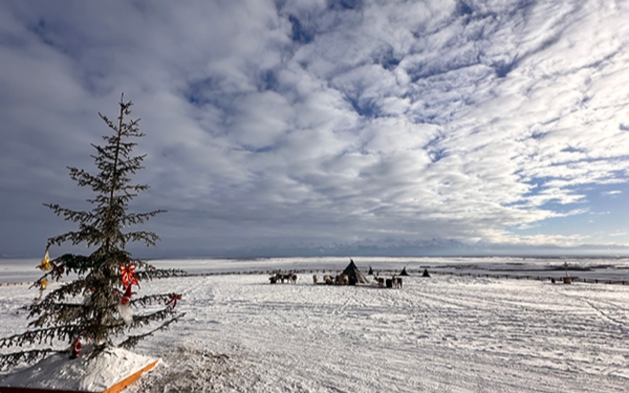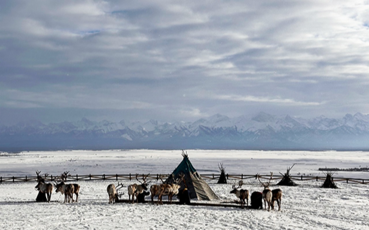 A magical moment as the Tsaatans arrive with their reindeer at the lodge. 🦌❄️ #NomadicEncounter #ReindeerMagic