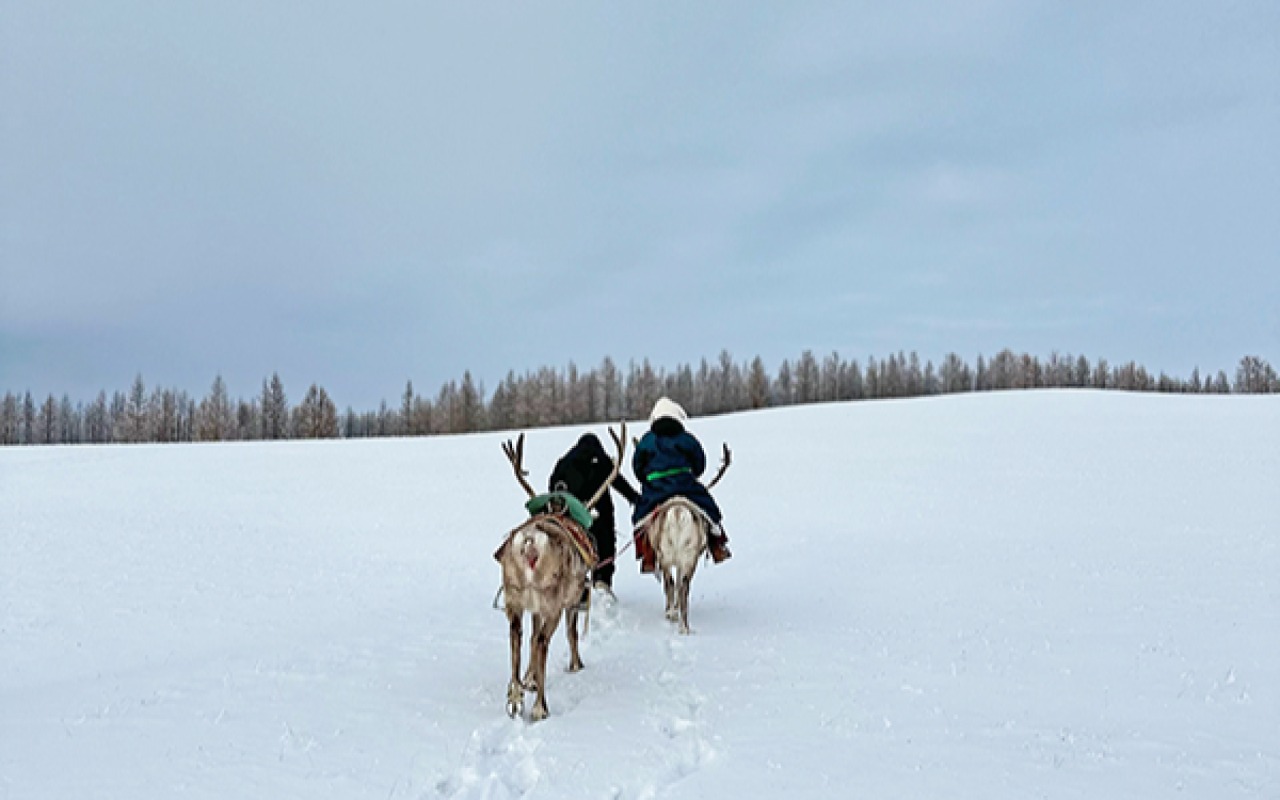 The couple's winter escapade kicked off with five days of exploration in the picturesque far Northern Mongolia including the Jargant River and Taiga area, where they encountered real reindeer riders and enjoyed a horse sleigh ride on the frozen lake next to Lake Khovsgol. In the latter part of their journey, they explored the stunning Terelj National Park, engaging in soft adventures such as horse riding, dog-sledding, and archery. A brief stop included a photo encounter with an eagle perched on their arm.